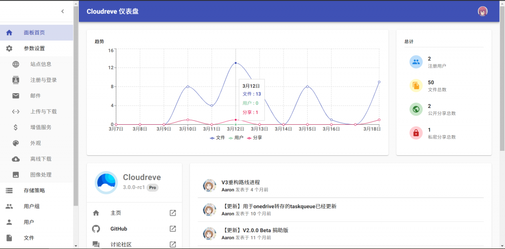 Cloudreve V3发布,支持六大云存储存/OneDrive世纪互联/aria2等