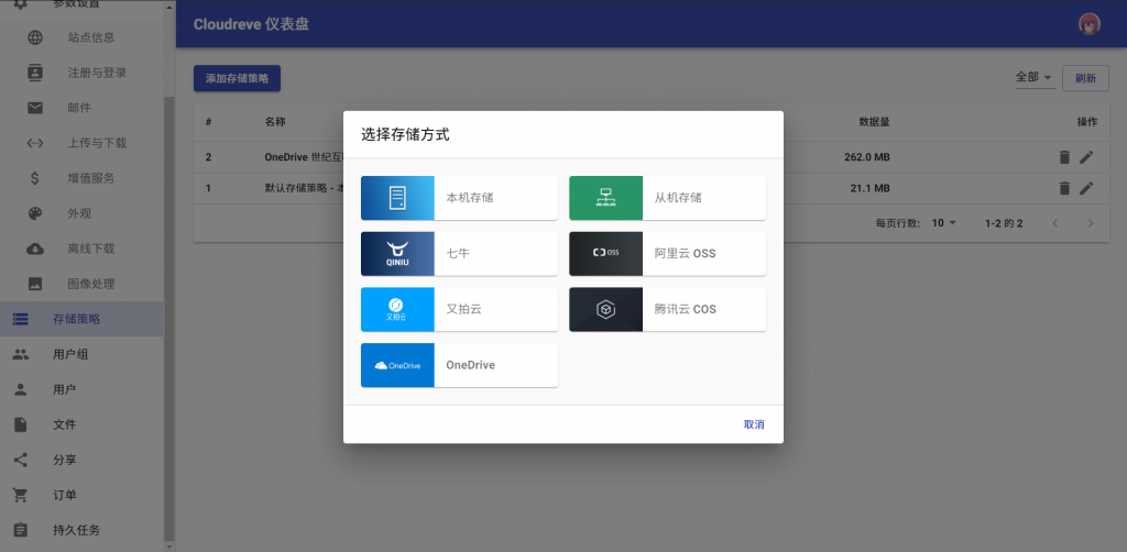 Cloudreve 是个公有网盘程序,你可以用它快速搭建起自己的网盘服务,公有云/私有云都可。Cloudreve 底层支持 本机存储、从机存储、阿里云OSS、又拍云、腾讯云COS、七牛云存储、OneDrive(国际版/世纪互联版),每种存储方式的上传下载都是客户端直传。你可以为不同用户组绑定不同存储策略,捐助获得Pro版后,可以为一个用户组分配多个存储方式,用户可以在前台自由切换。